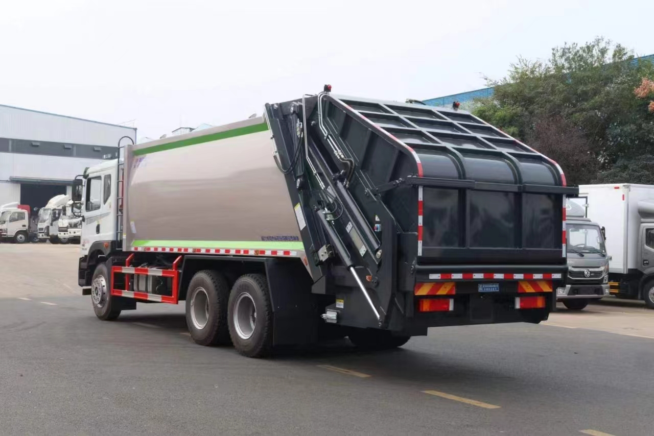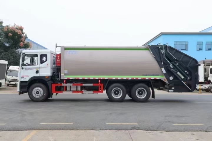 | 上裝配置 | 新款弧形箱體,箱體容積加大約22立方,箱體為優(yōu)質(zhì)高強(qiáng)度Q345錳鋼制作,底箱及填充器采用加厚鋼板,耐腐蝕使用壽命長,三層油漆噴涂處理/電泳工藝。裝載循環(huán)以及垃圾排出時(shí)間快,上裝部分具備雙向壓縮和蠕動壓縮功能帶。新款結(jié)構(gòu)加大填充器,手電一體操作模式,帶駕駛室操作,帶駕駛室一鍵卸料功能,尾部裝置可以選裝垃圾翻轉(zhuǎn)斗,掛桶翻轉(zhuǎn)板或者大落地斗。PLC/CAN總線控制方式,光電開關(guān)加延時(shí)雙系統(tǒng)控制,降低故障率,方便維修。帶夜間照明裝置,帶污水箱,標(biāo)配選用:定制油缸(質(zhì)保兩年),中梅多路閥,液壓油泵(雙泵雙閥),帶液壓散熱器,嘉善取力器。 | ||