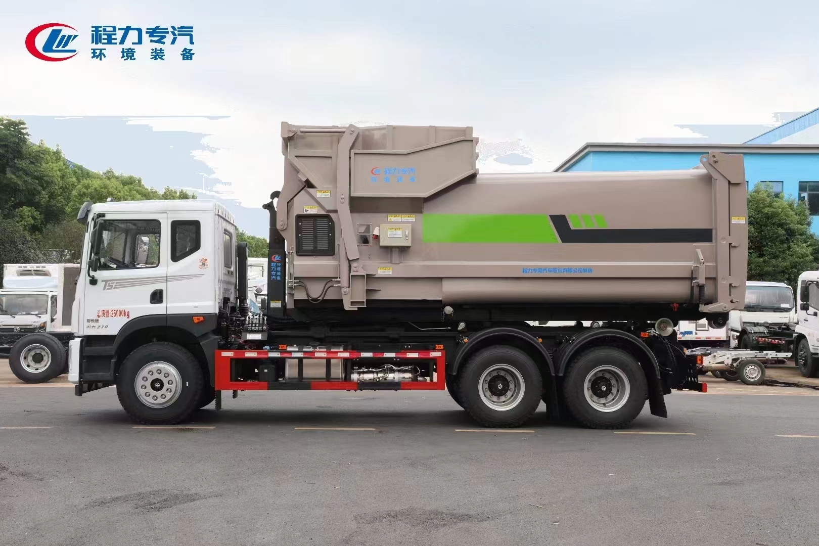 ??????湖北程力汽車:程力專汽東風(fēng)華神后雙橋勾臂垃圾車+移動(dòng)壓縮箱產(chǎn)品型號(hào)及參數(shù)配置,程力專汽東風(fēng)華神后雙橋勾臂垃圾車+移動(dòng)壓縮箱高清圖片,程力汽車系列程力專汽東風(fēng)華神后雙橋勾臂垃圾車+移動(dòng)壓縮箱最新報(bào)價(jià)請(qǐng)撥打客服熱線。車輛主要配置 產(chǎn)品名稱: 程力威牌CLW5253ZXXBHJ車廂可卸式垃圾車 外形尺寸: 828025503170(mm) 排放水平: 國(guó)六 貨箱尺寸: (mm) 總質(zhì)量: 25000(Kg) 接近/離去角: 15/19,15/20,15/21() 額定質(zhì)量: 14250,14185(Kg) 前懸后...