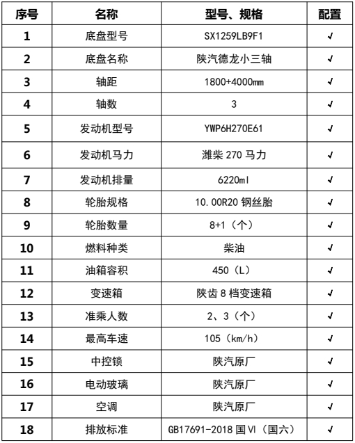 1,僅采用軸距(mm): 1800+4000和1950+4450; 2、該車廣泛應用于修筑高等級公路瀝青路面灑布作業(yè),主要專用裝置瀝青罐體,瀝青噴灑系統(tǒng),罐體總容量:14.67立方米, 有效容積:14.0立方米,罐體外形尺寸(長×長軸×短軸)(mm):5400×2450×1850,介質(zhì):液態(tài)瀝青,密度:900千克/立方米;罐體保溫層厚度為50mm;3、側防護材料采用Q235,焊接連接;后防護由專用裝置代替,下邊緣離地高350mm;4、ABS系統(tǒng)生產(chǎn)廠家:西安正昌電子股份有限公司,型號:ZQFB-V.選裝限速裝置,限速89km/h,隨底盤選裝駕駛室,后部照明燈僅在駐車狀態(tài)下使用,起夜間照明作用,行駛過程中不可點亮。