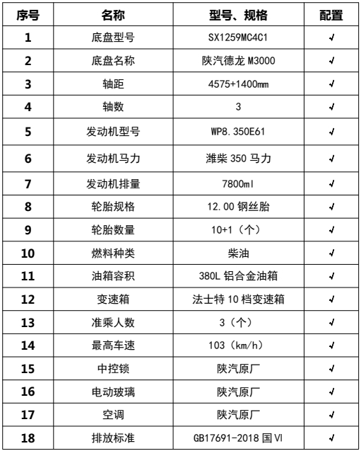 | 車(chē)輛主要配置 | |||