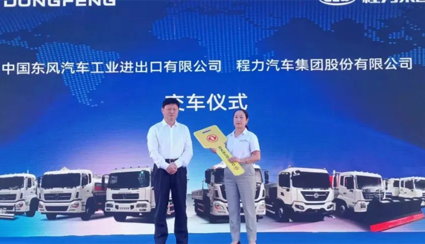 隨后,中國東風汽車工業(yè)進出口有限公司商用車海外營銷部中重型產品總監(jiān)吳永剛與程力集團國際市場部業(yè)務經理陳葦舉行了交車鎖匙牌授牌儀式。
