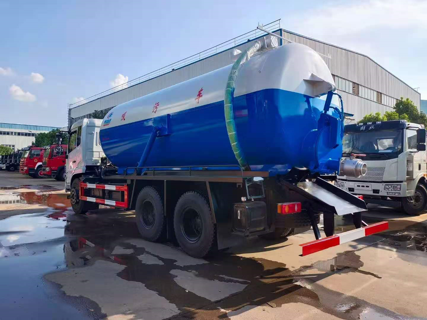 上裝配置 污罐:Q235武鋼6MM厚碳鋼板,標(biāo)配采用億豐2BE-204水循環(huán)泵,防溢閥,視糞管,配一根8米吸污管,罐體封頭一次壓鑄成型、罐體帶舉升,后蓋為液壓開啟。罐內(nèi)污物可通過后蓋直接傾倒,具有真空度高、噸位大、效率高、用途更廣泛的特點。
