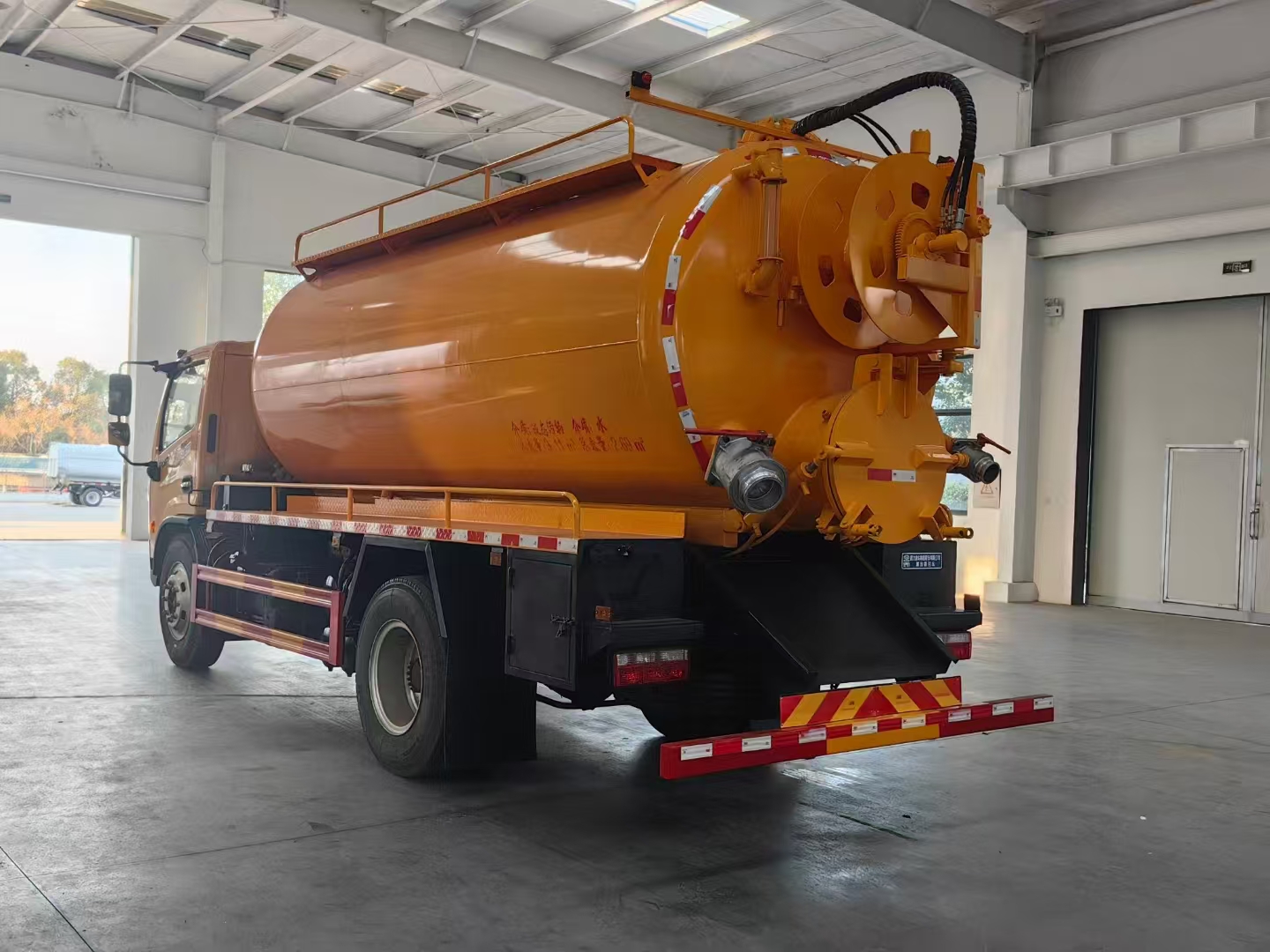 | 上裝配置 | 吸污罐容積約9立方,清水箱約4立方,污水罐6mm制作,清水罐和污水罐安裝互通。清水罐一個量水管,水箱最低點(diǎn)一個DN65球閥,帶消防接頭,品孚255流量高壓泵,帶60米19號高壓管,卷盤液壓旋轉(zhuǎn)180度,液壓收放管. 污水罐:SK-15水循環(huán)泵,水循環(huán)泵水箱為碳鋼材質(zhì),頂部防溢閥位置盡量最低,后蓋600液壓打開,100球閥直通罐頂吸污尾部一個150的排污球閥,吸污壓力表裝在水箱附近,罐體尾部兩側(cè)工具箱,手動油門,1根8米吸污管帶陰陽端接口,一個水雷槍頭,其他廠內(nèi)標(biāo)配… | ||